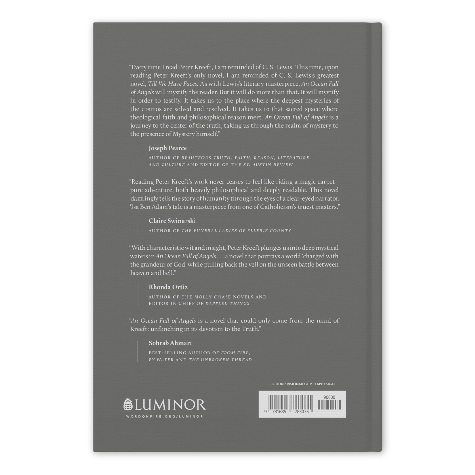 “Every time I read Peter Kreeft, I am reminded of C. S. Lewis. This time, upon reading Peter Kreeft’s only novel, I am reminded of C. S. Lewis’s greatest novel, Till We Have Faces. As with Lewis’s literary masterpiece, An Ocean Full of Angels will mystify the reader. But it will do more than that. It will mystify in order to testify. It takes us to the place where the deepest mysteries of the cosmos are solved and resolved. It takes us to that sacred space where theological faith and philosophical reason meet. An Ocean Full of Angels is a journey to the center of the truth, taking us through the realm of mystery to the presence of Mystery Himself.”